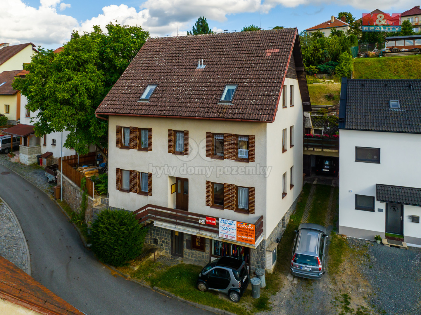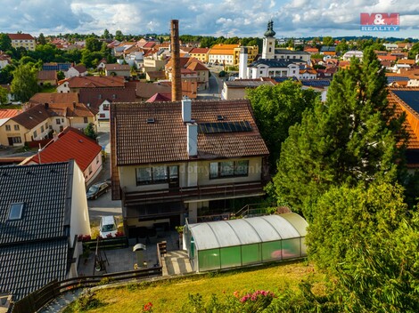 Prodej vícegeneračního patrového rodinného domu 7+1 v blízkosti centrálního náměstí Bystřice nad Pernštejnem. Dům zkolaudovaný v roce 1990 stojí na vlastním oploceném pozemku o celkové ploše 622 m2. Přízemí je využíváno jako prodejna textilu se zázemím. První patro disponuje sušárnou, dílnou, garáží a technickými místnostmi. Ve druhém patře je kuchyň, koupelna s vanou, WC, prostorný obývák s východem na terasu, do zahrady a ke krytému bazénu. Třetí patro s východem na balkon disponuje ložnicí a třemi menšími pokoji, vzniklými rozdělením větší místnosti sádrokartonem. Dům s orientací převážně na jih je napojen na obecní vodovod i kanalizaci, zaveden je plyn i elektřina. Vytápění a teplou vodu zajišťuje plynový kotel a krbová kamna. Napříč všemi patry je vedena výtahová šachta, k instalaci výtahu ale nedošlo. Celková dispozice domu vybízí ke koupi pro investiční záměr - přestavbu dvou až tří bytových jednotek nebo penzionu. Cena za nemovitost. Pro další informace kontaktujte makléře.