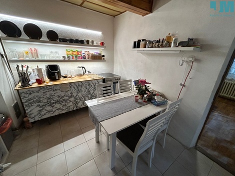 Rodinný dům 2+1 v Jaroměřicích nad Rokytnou - Klidné bydlení s nádechem historie Hledáte klidné bydlení v malebném městečku s bohatou historií a výjimečnou přírodou? Tento přízemní rodinný dům v Jaroměřicích nad Rokytnou vám nabízí harmonii pohodlí a venkovské pohody. Základní informace: Lokalita: Klidná část města, neprůjezdná ulice zaručuje minimální hluk a prašnost, přesto jen pár kroků od centra. Dispozice: 2+1 s možností půdní vestavby. Celková plocha pozemku: 657 m2. Užitná plocha domu: 105 m2. Parkování: 2-3 místa před domem. Vybavení a výhody: Kuchyně: Kuchyňská linka, elektrický sporák, dřez a kombinovaná chladnička. Obývací pokoj: Pohodlná sedačka, úložné prostory, dřevěné obložení stropu. Ložnice: Postel a vestavěné skříně. Šatna: Praktický úložný regál. Koupelna: Prostorná, s pračkou bez omezení pohybu. Technické parametry: Vytápění: Krbová kamna s ústředním rozvodem tepla, nízké náklady (cca 20 000 Kč na zimu). Energie: Zálohy na elektřinu 2 100 Kč/měsíc, voda a stočné 800 Kč/měsíc. Další prostory: Garáž, sklep, 2 kůlny - ideální pro skladování. Zahrada (podlouhlý obdélník): Vhodná pro zahrádkářské i rekreační účely, s připraveným místem pro bazén. Lokalita: Město Jaroměřice nad Rokytnou je známé svým impozantním barokním zámkem, francouzskou zahradou a anglickým parkem, ideálním pro procházky i relaxaci. Okolní příroda Vysočiny láká k výletům a aktivnímu odpočinku. Proč právě tento dům? Klidné bydlení v lokalitě s bohatou historií a krásnou přírodou. Ideální volba pro rodinu, jednotlivce i investory. Možnost rozšíření díky připravené půdní vestavbě. Neváhejte a domluvte si prohlídku tohoto jedinečného domu, který může být vaším novým domovem nebo skvělou investicí!