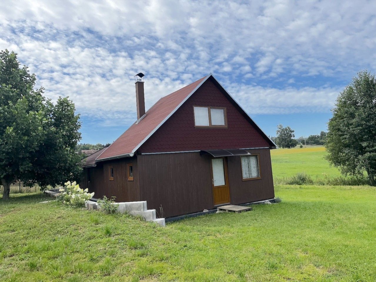 Krásná chata na polosamotě Na základě výhradního zastoupení nabízíme k prodeji krásnou novostavbu dřevěné chaty na polosamotě s možností celoročního bydlení. Chata sestává z obývací kuchyně, obývacího pokoje, dalšího pokoje a v 2.NP se nachází ložnice a dále spací prostor pro případné návštěvy. Zastavěná plocha je 54 m2. Na pozemku se nachází 30 m hluboký vlastní vrt, ze kterého je voda dovedena do chaty, odpady jsou svedeny do jímky o objemu 4 m3. Elektřina je řešena fotovoltaickými panely a v případě potřeby elektrocentrálou. Na pozemku dále stojí dřevěný sklad nářadí. Jednou z předností nemovitosti je její umístění u lesa, mimo obytnou zónu. V sousedství se nachází pouze jedna chata a menší zahrádka. Chata je do této doby téměř neužívaná, v perfektním stavu, postavená a zařízená pro užívání i větší rodiny. Vše, co je na fotografiích, tak je součástí prodeje. Pozemek o celkové výměře 1100 m2 je oplocený. Místo i celá stavba je velice příjemná a určitě si ji zamilujete hned při první návštěvě. Pro více informací volejte makléře! <a href="https://www.eurobydleni.cz/byty/1_kk/praha-5/obec-hlubocepy/pronajem/"><strong>Pronájem bytu 1+kk Praha 5, Hlubočepy</strong></a>