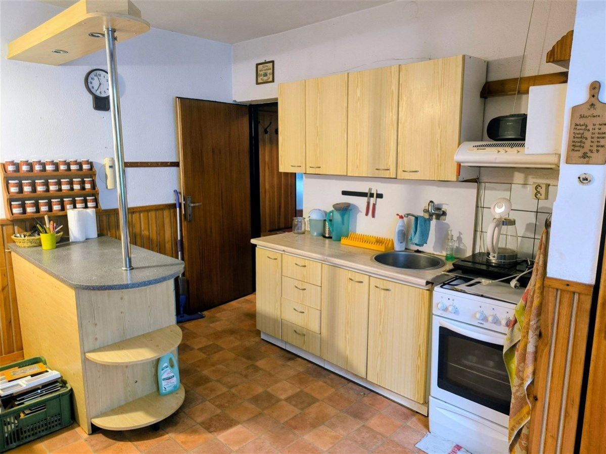 Ve výhradním zastoupení nabízíme k prodeji rodinný dům s rozsáhlou přilehlou zahradou v Čáslavicích, okres Třebíč. Západní, historická část domu, velikostní kategorie 3+1, pochází ze čtyřicátých let minulého století a aktuálně není obývána. Východní polovina domu byla vybudována v roce 1980, je podsklepena včetně garáže a ve zvýšeném přízemí a podkroví nabízí dispozici 4+1 na 114 metrech čtverečných. Obě obytné části jsou spojeny krytým průjezdem vhodným i pro parkování a ústícím do rozsáhlé užitkové a okrasné zahrady, s hospodářským stavením, dílnou, venkovním sklepem, skleníkem dalšími hospodářskými budovami. Objekt je napojen na obecní kanalizaci i vodovod, má vybudovanou přípojku elektřiny (230/400V, rozvody v mědi) a plynu, který ale není aktivně využíván. V roce 2024 byl instalován moderní kotel na tuhá paliva. Na pozemku se nachází kopaná studna. Parcely o celkové výměře 2.595 m jsou oplocené a dostupné také z nezpevněné komunikace na zadní, severní části zahrady. Dům je obytný, hodí se ale také jako základ pro vlastní realizaci modernizačního projektu. Aktuálně jsou pro případnou rekonstrukci použitelné zdroje z dotačního programu "Oprav dům po babičce". Jižní orientace střechy má předpoklady pro osazení FTVE či solárního systému. Pokud uvažujete o vlastním bydlení v nádherné části Vysočiny s dostatečně velkým pozemkem pro plnění Vašich snů, je nabízený dům přesně pro Vás. Kontaktujte makléře!