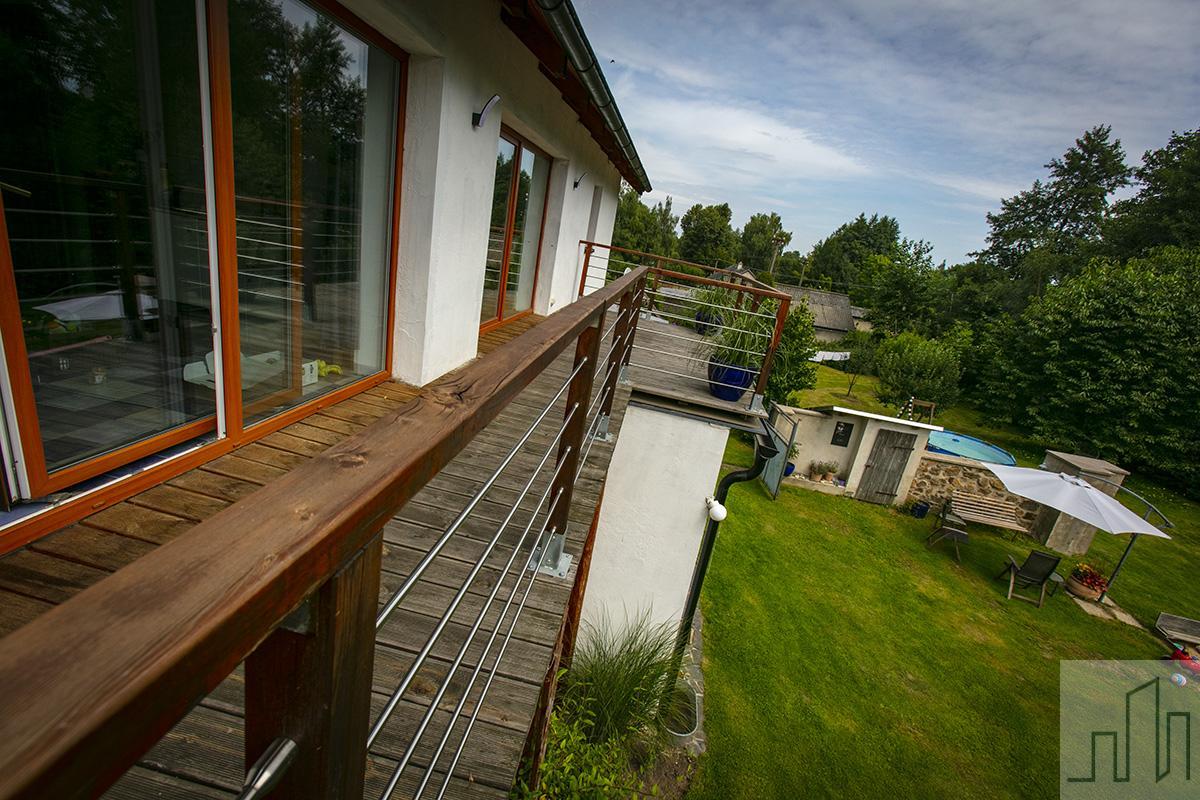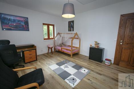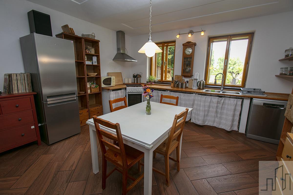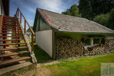Nabízíme k prodeji nádherné rodinné stavení v obci Smilov, která spadá pod městys Štoky. Součástí prodeje této usedlosti je velký pozemek, na kterém se nachází prostorná stodola, sauna, sklep, dva dřevníky a zahradní altán. Dům je kompletně zrekonstruovaný. Spodní část domu, kde se nachází předsíň a obývací pokoj propojený s kuchyní, je velmi prostorná a světlá. V obývacím pokoji je pec, která mimo jiné slouží k vytápění a ohřevu vody jako doprovodný zdroj k elektrickému kotli. Z obývacího pokoje projdete do menší místnosti, kde je po pravé straně vstup do koupelny s rohovou vanou, sprchovým koutem a WC. Proti vám jsou na levé straně dveře pro vstup do kotelny s velkým úložným prostorem a výstupem na zahradu. Proti vám je dřevěné schodiště s výstupem do prvního patra. V patře se nachází ložnice, pracovna, dětský pokoj, koupelna a samostatné WC. Kromě dětského pokoje mají všechny pokoje vstup na prostornou terasu, ze které je krásný výhled na pozemek s altánem a stodolou. Díky francouzským oknům jsou pokoje v patře nádherně prosvětleny. Toto vesnické stavení bylo velmi kvalitně a vkusně zrekonstruováno. První patro bylo vystavěno nově. Pozemek patřící k domu vás obklopuje ze všech stran. Před domem je skleník a zahrada s ovocným sadem, z boku pak máte sezení se slunečníkem pro letní posezení či grilování. V případě horšího počasí či velké oslavy je k dispozici prostorný altán a velkou stodolou sloužící dnes jako dílna. Lze ji využít i jako garáž. Z boku stodoly je nově zbudovaná sauna s bazénkem. Za stodolou je ve svahu malý sklípek pro uchování potravin či vína. Zadní část domu (vedle stodoly) má schodiště, po kterém vyjdete na terasu do horního patra. Pokud projdete mezi stodolou a domem, dojdete na zadní části pozemku, kde se nachází velký otevřený dřevník. Pozemek není oplocen a tak celý prostor působí vzdušně a otevřeně s patřičnou mírou soukromí. Druhý menší dřevník je na pozemku u příjezdu k domu. Po levém boku pozemku protéká malý potok a hned vedle něj se nachází Horní rybník. Dům je vhodný jak k bydlení, tak k rekreaci. Díky své pozici máte do centra Havlíčkova Brodu 15 minut. Za 10 minut jste na dálnici D1 nebo za 20 minut v Jihlavě. Hledáte-li soukromí, klid pro práci či odpočinek, tento dům vřele doporučujeme. Jedná se o výjimečnou nemovitost v krásné a klidné lokalitě s výbornou dostupností. Majitel je ochoten o ceně jednat osobně při prohlídce nemovitosti.