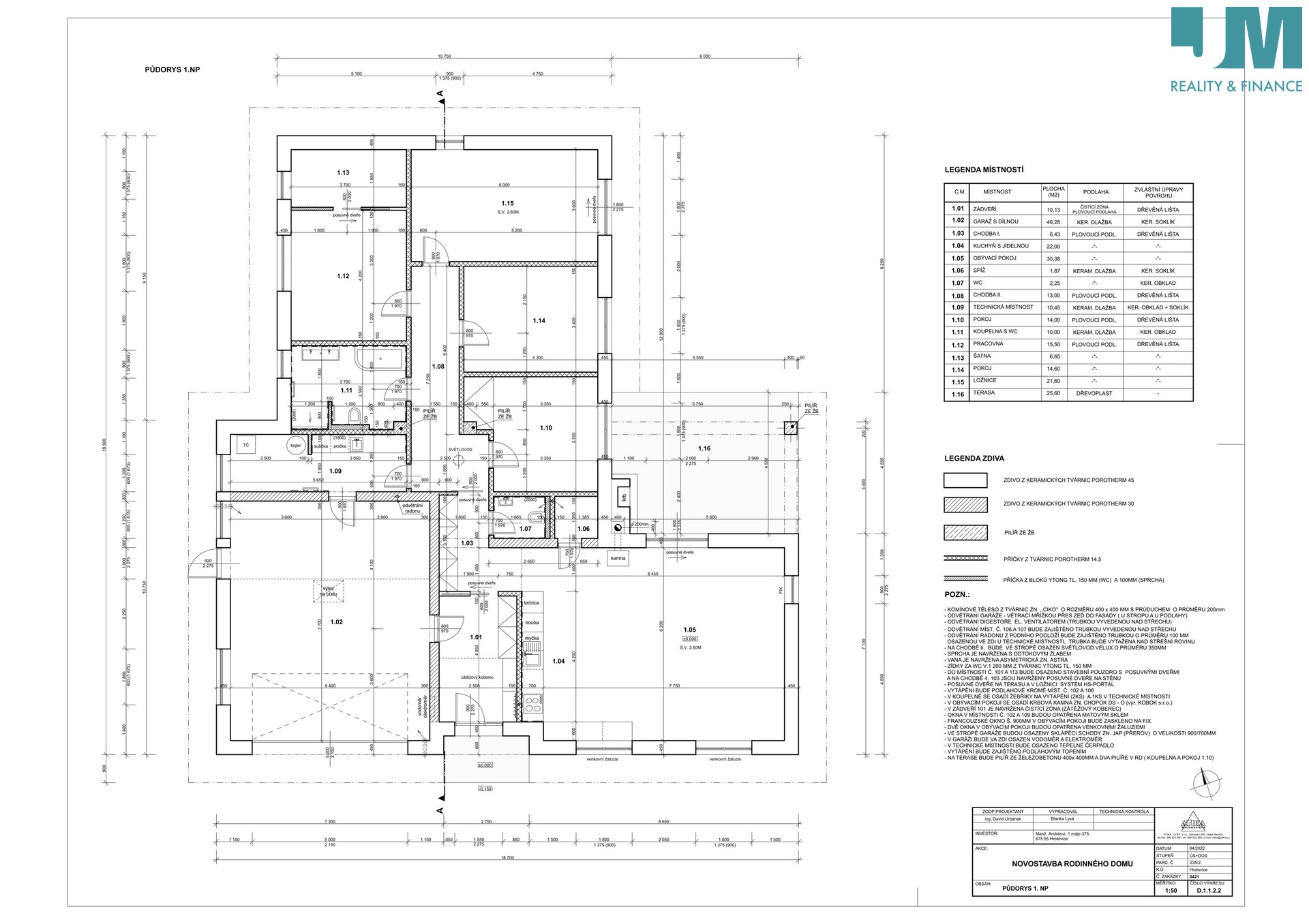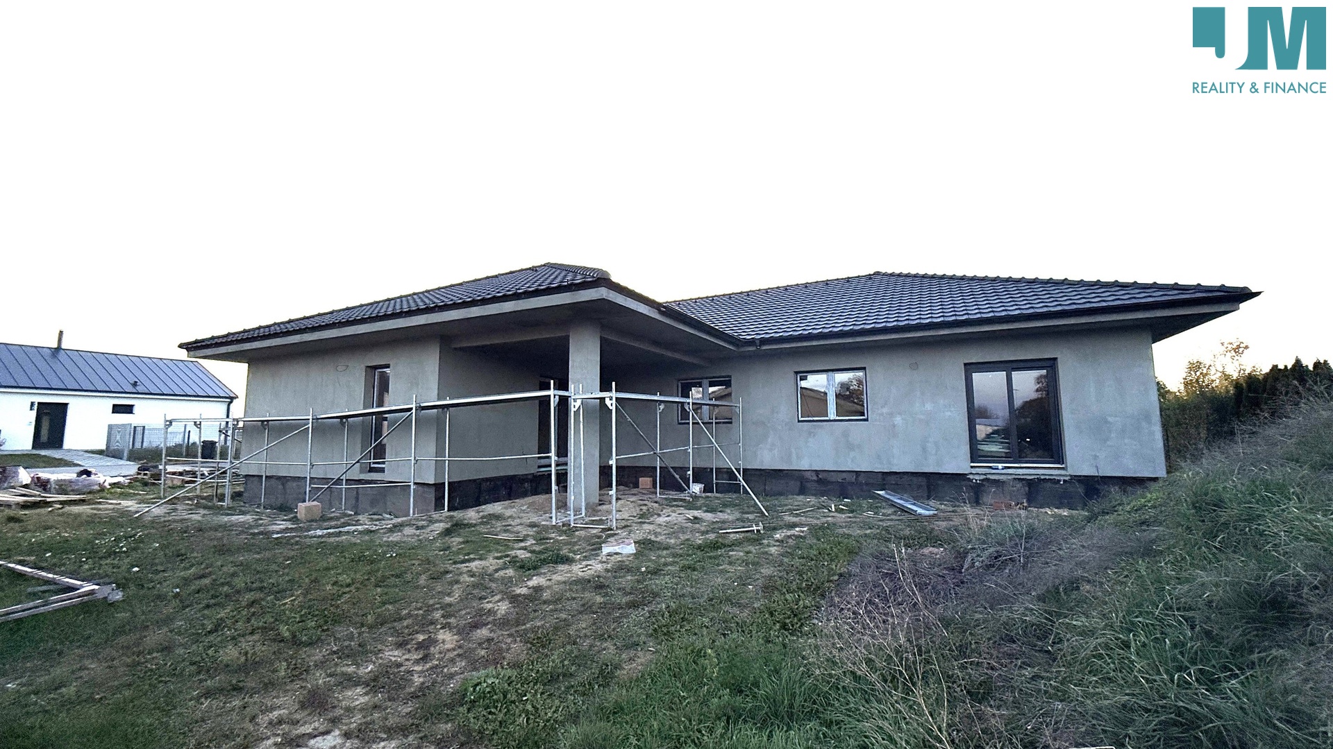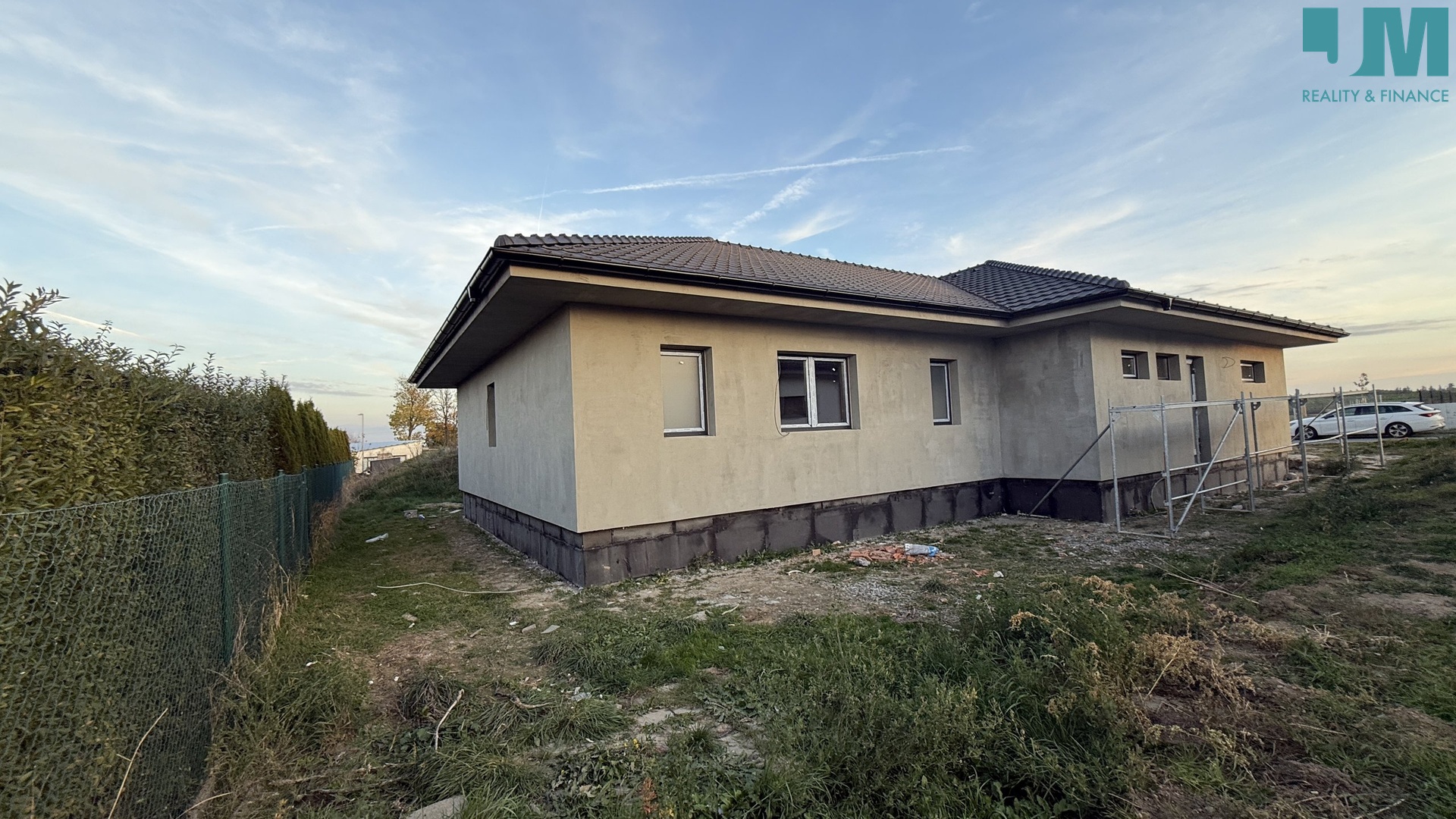 Rád Vám zprostředkuji prodej krásné prostorné novostavby v klidné části Hrotovic (10 minut od Dukovan). V domě naleznete ložnici s šatnou, pracovnu, dva pokoje, prostorný obývací pokoj propojený s kuchyní a vstupem na zastřešenou terasu. Z kuchyně je vstup do komory. V domě je také koupelna s prostorem pro vanu, sprchový kout a toaletu, dále v domě naleznete samostatnou toaletu. Vedle vstupu do domu se nachází garáž pro dvě auta o rozloze 49 m2. Za garáží je technická místnost. Zdi domu tvoří Heluz, střecha Tondach. Okna, dveře a posuvné dveře jsou z plastu. V domě bude kompletní rozvod elektriky (měď), příprava na předokenní žaluzie a také příprava pro fotovoltaiku a vallbox. Součástí je podlahové topení v celém domě, tepelné čerpadlo De Ditrich Alezio v200 r32. V ceně není: vybavení domu (zařizovací předměty, vnitřní dveře, koupelna, toalety, kuchyň), finální podlahy (např vinyl, dlažba), oplocení pozemku a dokončovací práce na pozemku. Jedná se o velice krásný a praktický dům s pozemkem 899 m2. Pro více informací mě neváhejte kontaktovat
