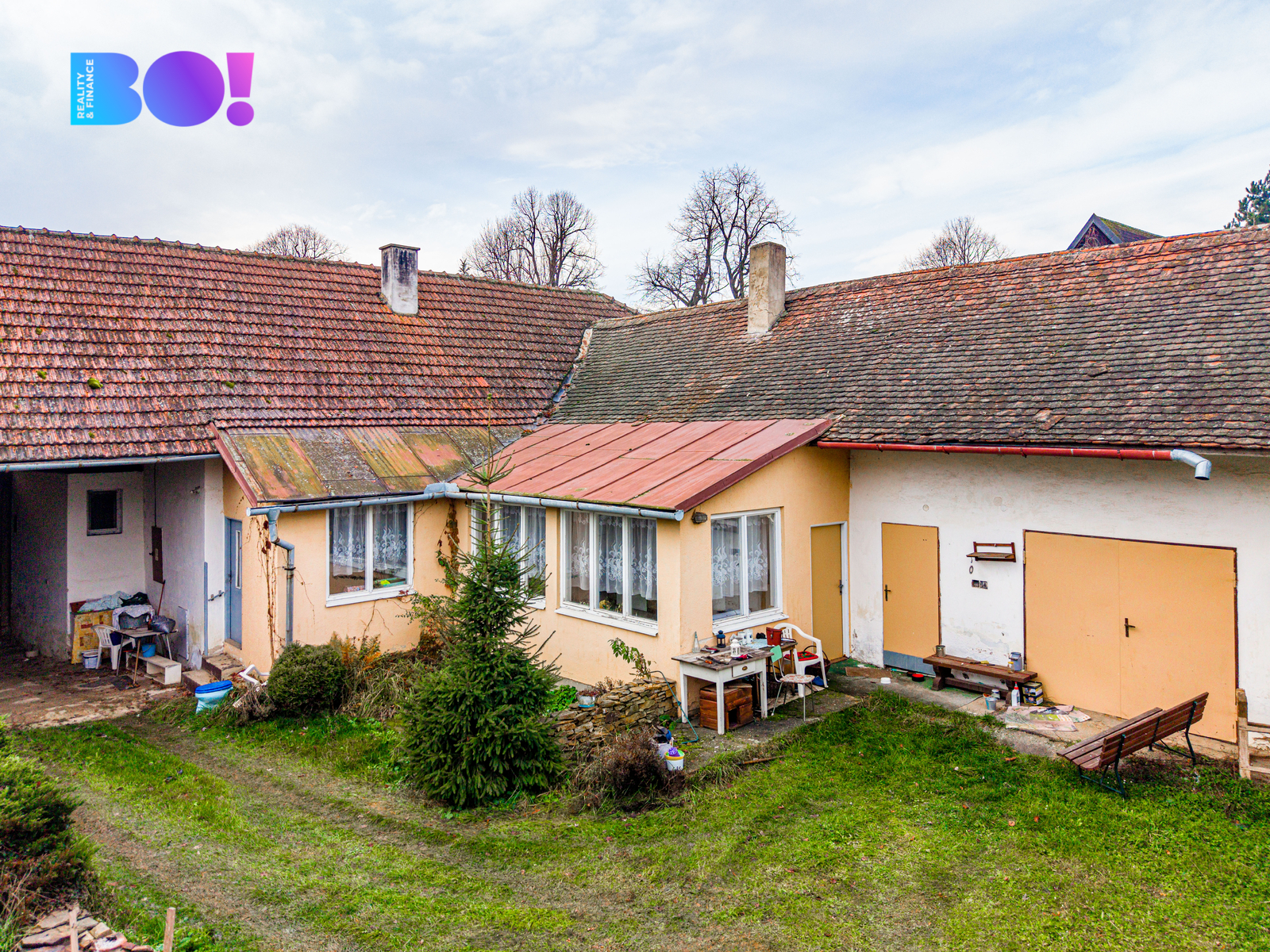 Prodej domu s uzavřeným dvorem a novou střechou v obci Budkov