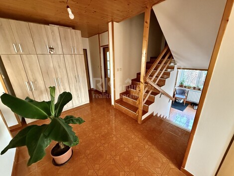Zprostředkujeme Vám prodej rodinného domu 5+KK s garáží, Rozkoš u Humpolce. Jedná se o rodinný dům dispozičně řešen jako 5+kk s balkónem, garáží, dílnou, technickými místnostmi a úložnými prostory o celkové užitné ploše 300m2, zastavěná plocha je 145 m2. Dům má jedno podzemní podlaží a dvě nadzemní podlaží. Celková plocha pozemku je 816 m2. Dům je vytápěný automatickým kotlem, v obývacím pokoji a v podkroví jsou krbová kamna. Ohřev teplé vody je zajištěn jak přes kotel tak elektrickým bojlerem. K domu náleží zahrada o rozloze cca 671 m2 s venkovní pergolou a skleníkem. Dům je kompletně zateplený, včetně nové zateplené střechy a střešní krytiny. Kolaudace domu proběhla v roce 2005, nová střecha v roce 2019. Rozkoš je vzdálena 2 km od Humpolce, ve městě je kompletní občanská vybavenost a nájezd na dálnici D1, jedná se o střed mezi Prahou , Brnem , Českými Budějovicemi a Hradcem Králové. V obci je veškerá občanská vybavenost. V okolí je klid s nádhernou přírodou. Uvedena energetická kategorie G, jelikož nemáme k dispozici PENB. Pro bližší informace volejte makléře.