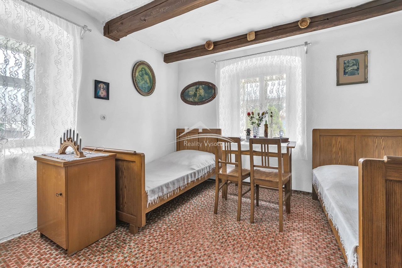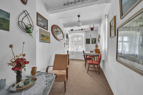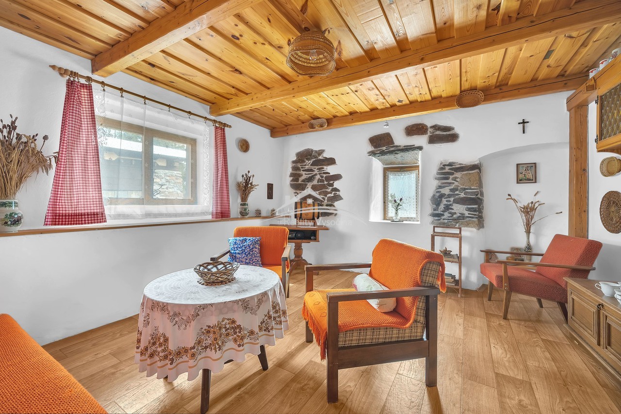 Nabízíme ve výhradním zastoupení velmi pěknou stylovou chalupu o dispozici 3+kk na pozemku o celkové výměře 760 m2, situovaný na slunném a klidném místě mimo hlavní silnici. Dům byl postaven přibližně v roce 1920 a má kombinované zdivo z cihel a kamene. Je napojen na elektřinu 220/380 V (částečně v mědi), obecní vodu a k dispozici je také vlastní studna, kterou lze využít například pro zalévání zahrady. Odpady jsou svedeny do septiku s přepadem do kanalizace, plyn zaveden není. Dispozice domu 3+kk zahrnuje také verandu, dále koupelnu se sprchovým koutem a splachovacím WC, přičemž teplou vodu zajišťuje elektrický bojler. Vytápění je řešeno přípravou do komína lokálními kamny na tuhá paliva - stačí je pouze osadit. Nad celým domem se nachází prostorná půda s možností vestavby. Interiér domu si zachoval původní atmosféru venkovského stavení, nachází se zde původní klenuté a trámové stropy, které dodávají domu jedinečný charakter. Chalupa se prodává včetně vybavení tak, jak je zachyceno na fotografiích, a je tak připraven k okamžitému užívání. Na zahradě se nachází dřevěná garáž, zahradní domek na nářadí a udírna v zadní části domu, kde je zajištěno naprosté soukromí. Toto místo nabízí ideální prostor například pro vybudování venkovního krbu s pergolou a příjemného posezení. Nemovitost je vhodná jak pro trvalé bydlení, tak i jako rekreační objekt. Financování je možné hypotékou nebo stavebním spořením.